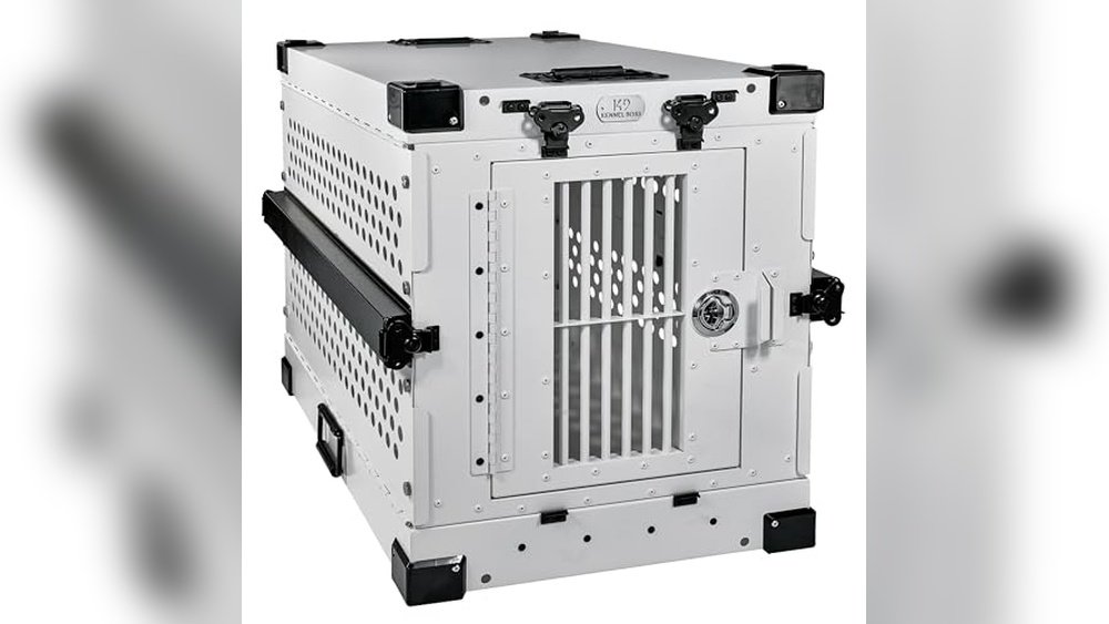 The K9 Kennel Boss features heavy-duty aluminum construction with secure locking mechanisms. It prevents escape and protects dogs during transit. Ventilation slots keep dogs comfortable. Its collapsible design allows convenient handling without compromising stability or safety.