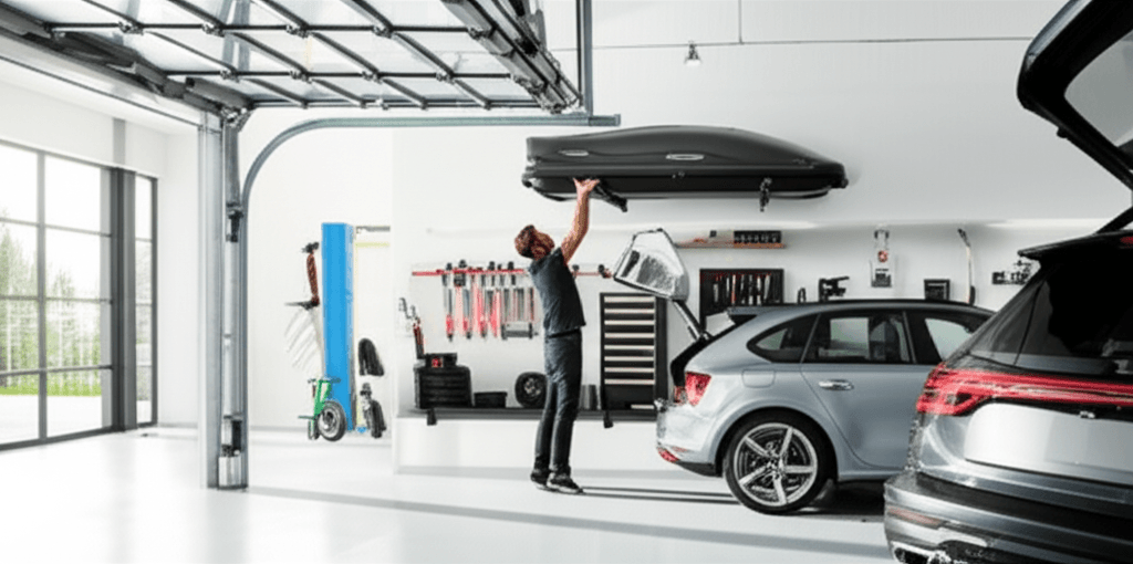 How it Works: You install sturdy brackets or a dedicated rack system onto your garage wall. The roof box then rests securely on these arms.