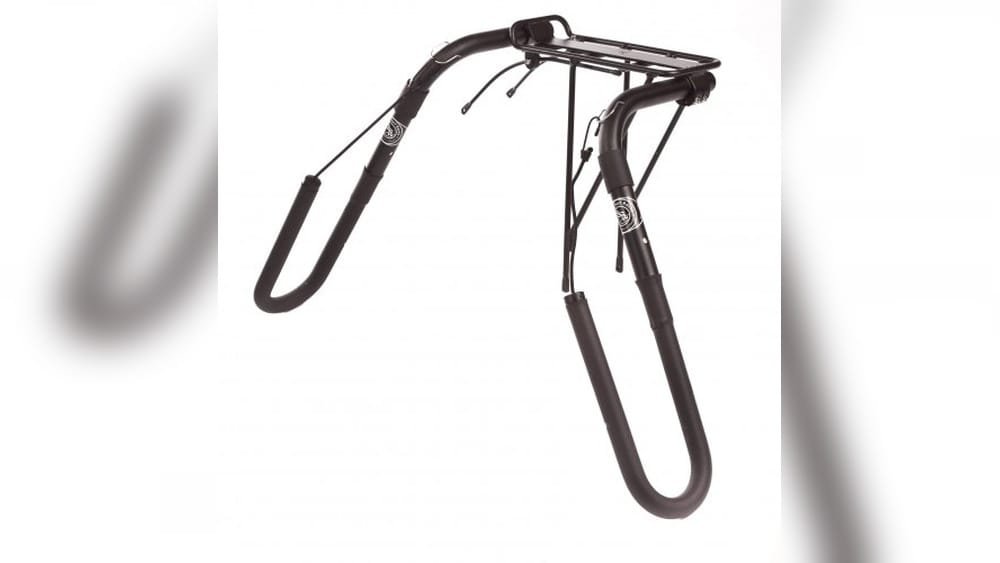 The rack offers stable and secure transport. Padded supports and firm clamps prevent board movement, ensuring safe rides on rough or smooth terrains.