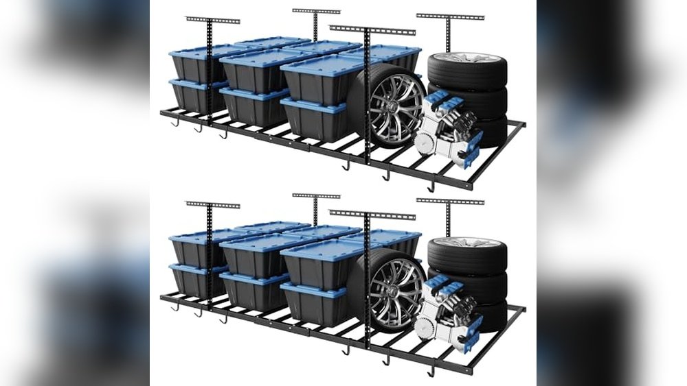Ideal for garage owners and DIY enthusiasts seeking robust overhead storage to maximize space, especially those with medium to high ceilings looking to organize bulky items efficiently.