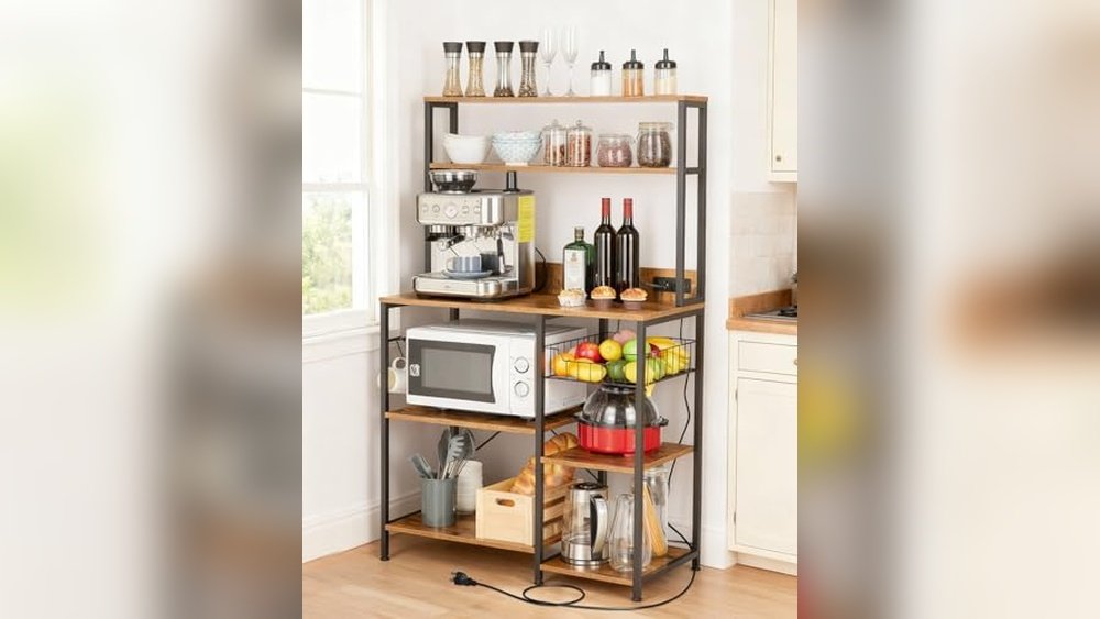 The built-in power strip with three outlets and a switch was by far the most useful feature. It saved me from dealing with multiple extension cords and cluttered counters. The large open shelves gave me plenty of space to organize everything without feeling cramped. The versatility of this rack impressed me—it wasn’t just for the kitchen. I even thought about using it as a plant stand or extra storage in the living room because it looks nice and fits well in different spaces.