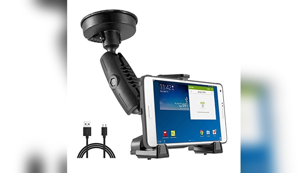 - Strong suction cup mounts securely on both dashboard and windshield surfaces.