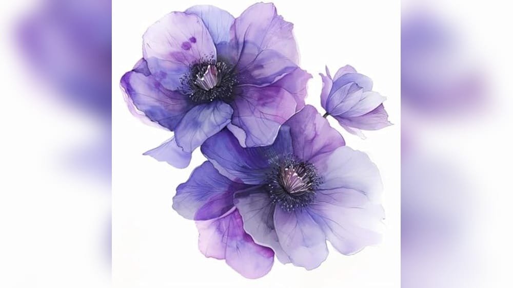 - Features a beautiful purple clematis flower design in a delicate watercolor style.