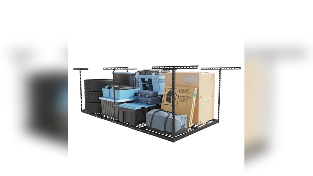 - Adjustable ceiling rack design allows customization to fit different garage dimensions.